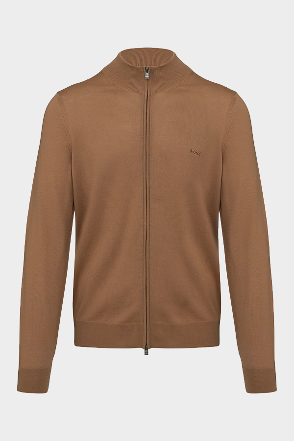 ZIP-UP CARDIGAN IN VIRGIN WOOL WITH EMBROIDERED LOGO